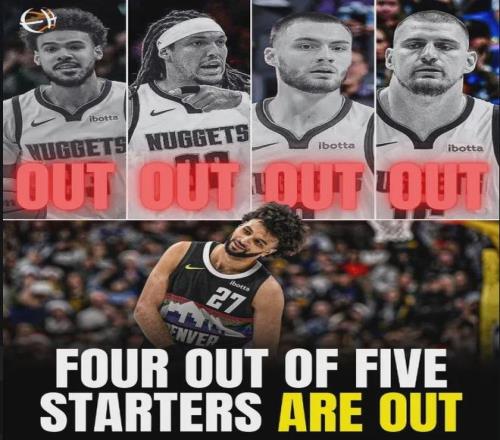 瓦兰右小腿拉伤,布劳恩左脚踝扭伤,戈登右腿筋二级拉伤,约翰逊右膝骨挫伤,约基奇膝关节过度伸展并伴有骨挫伤......掘金整整5名主力球员全部躺进了医院,只剩穆雷一人苦苦支撑,正儿八经的单核带队负重前行。