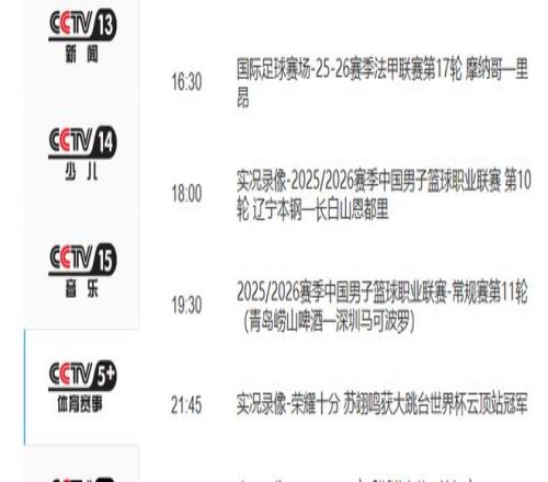1月5日(星期一)晚,2025/26赛季CBA联赛常规赛第11轮先赛3场,具体对阵为: